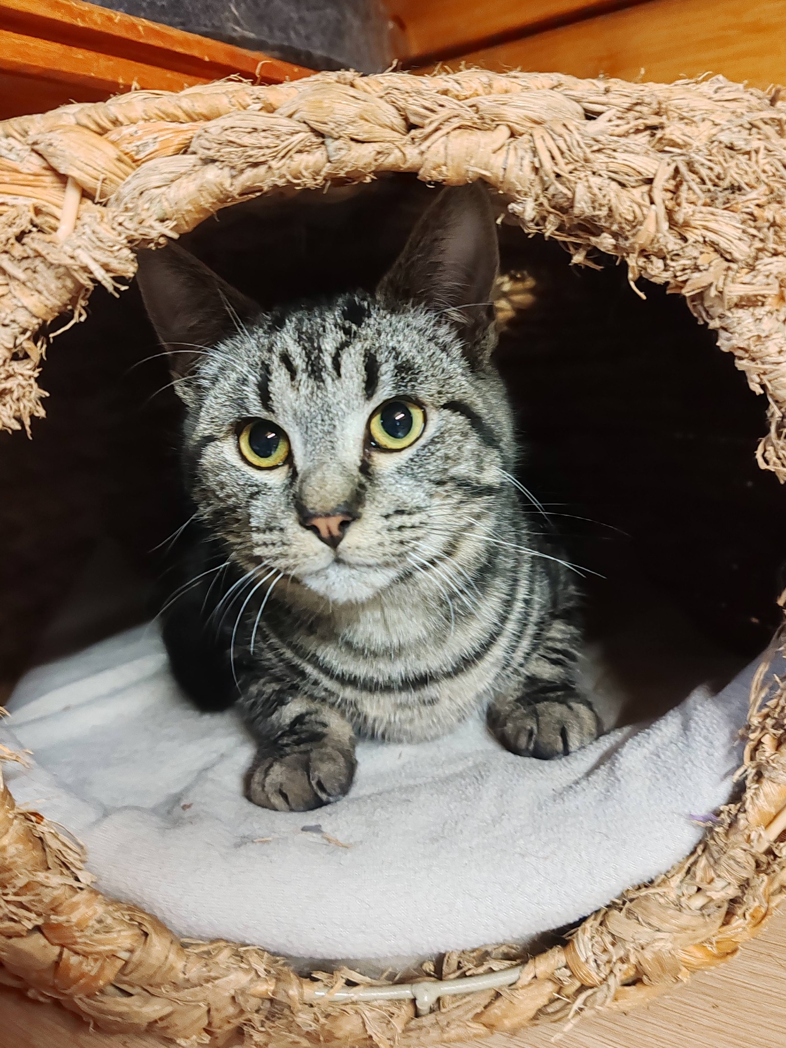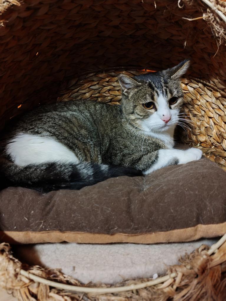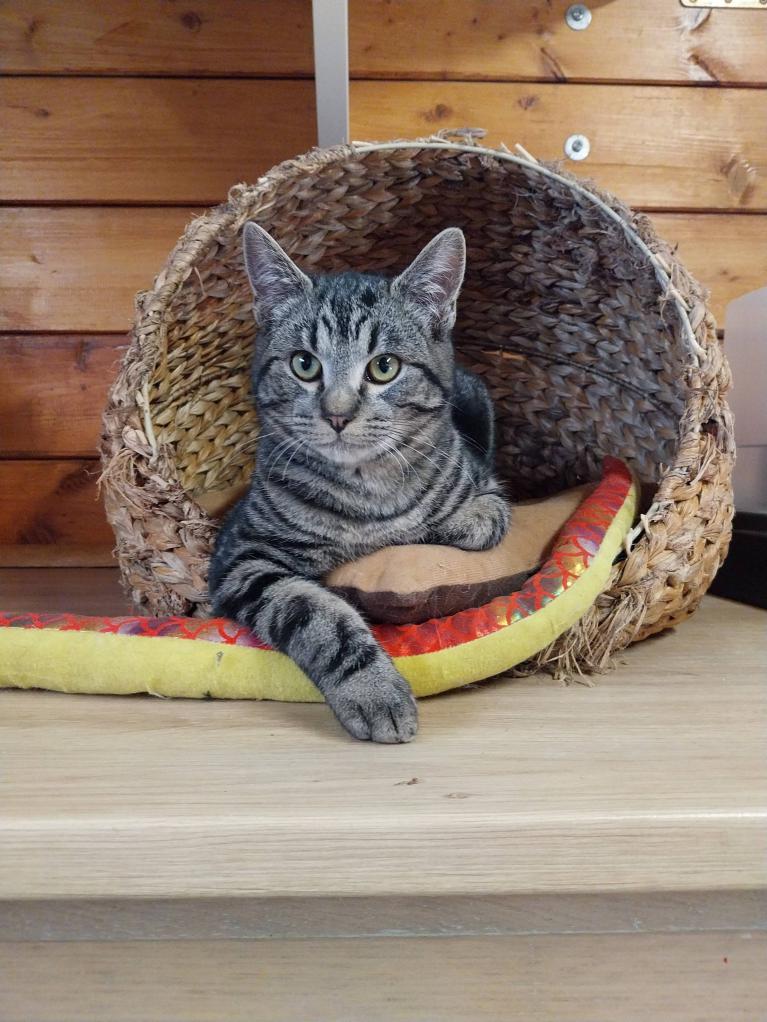 Avec son magnifique pelage tigré, aux nuances douces et naturelles, Blomm aura besoin d'un temps d'adaptation dans sa nouvelle famille afin de se sentir en sécurité.