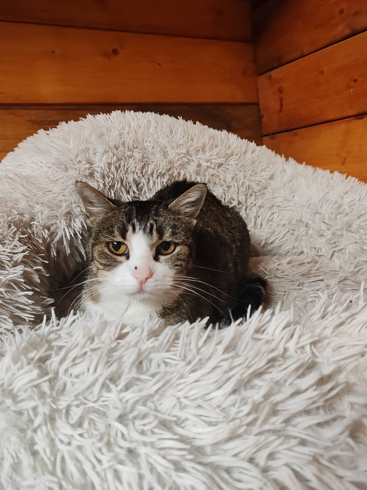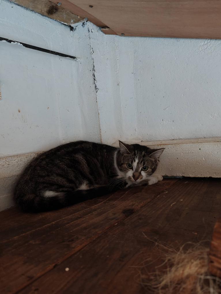 Cette adorable chatte est une grande timide au coeur tendre.